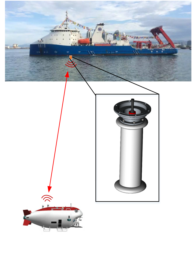 当载人潜水器潜入深海中,声波成为穿透海水与水面联系的唯一可用媒介。然而,海底声信号到达水面后,受母船自身噪声污染变得不再清晰。常规做法是使水面接收换能器远离噪声源,但这会给母船操控带来不便。