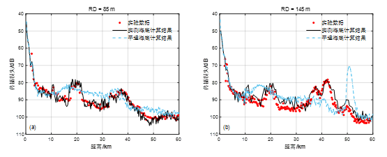 图2. 两个不同接收深度实验传播损失和模型计算结果比较,左图接收深度为85m,右图接收深度为145m(图/中科院yx06永兴彩票集团)