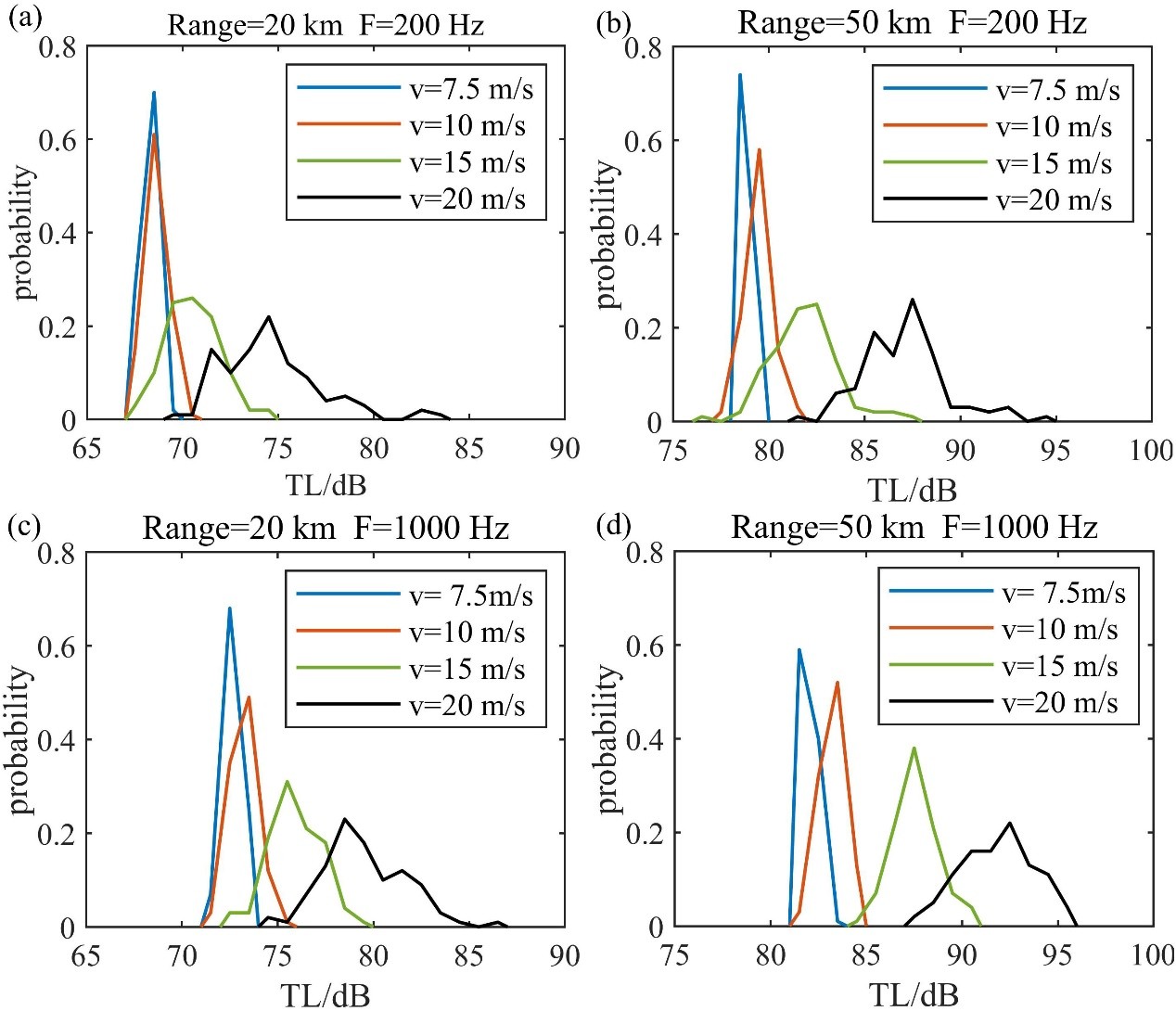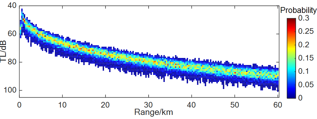 等声速环境中不同频率、不同距离下传播损失的概率分布(图/中科院yx06永兴彩票集团)