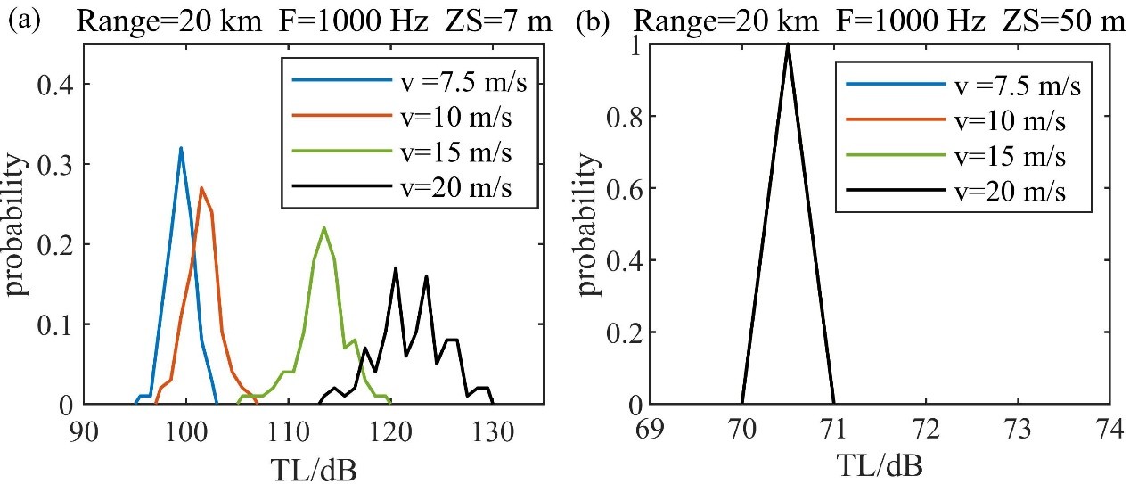 跃层环境中不同声源位置下传播损失的概率分布(图/中科院yx06永兴彩票集团)