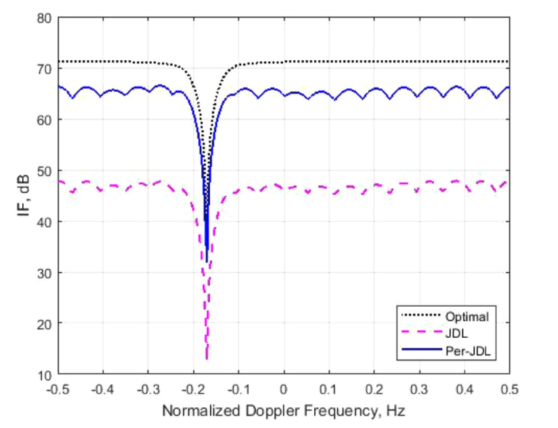 研究结果显示,当有足够的训练样本时,JDL STAP相比最优STAP性能损失为6dB,而Per-JDL STAP相比最优STAP性能损失为4dB。当训练样本不足时,JDL STAP算法的性能损失为25dB,而Per-JDL STAP算法的性能损失只有6dB。