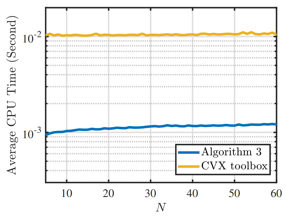图3 设计的MLE算法(Algorithm 3)与使用凸优化工具箱的平均CPU运行时间(图/中科院yx06永兴彩票集团)