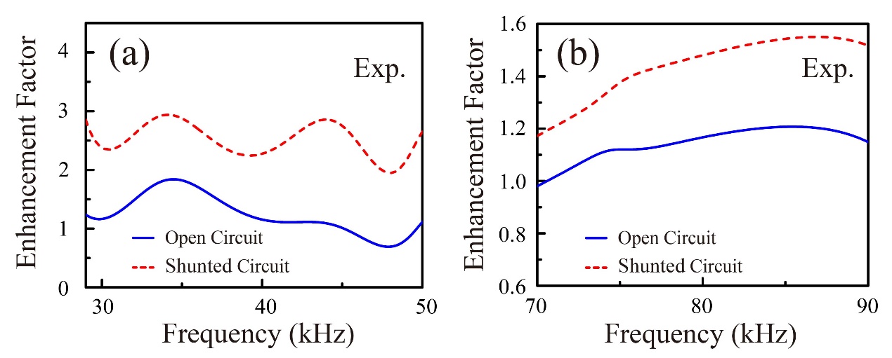 研究人员首先推导了外接分流电路对压电陶瓷片纵向振动的调控方程,并给出周期条件下该系统的声波色散规律,进而得到长波近似下的系统等效声学阻抗与外接电容之间的关系。