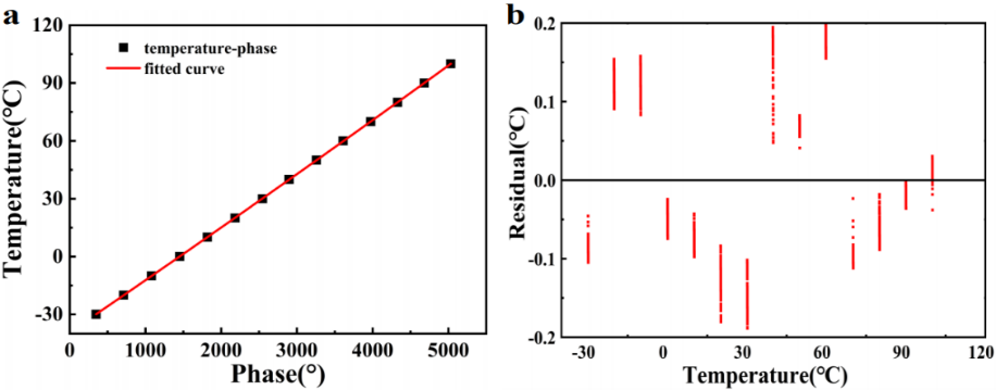 图2 所研制的传感器系统温度灵敏度及精度测试结果(图/中科院yx06永兴彩票集团)