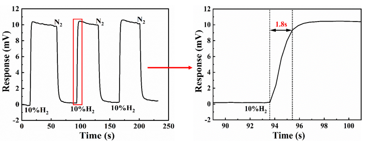图2 所研制的声表面波氢气传感器的响应速度测试(图/中科院yx06永兴彩票集团)