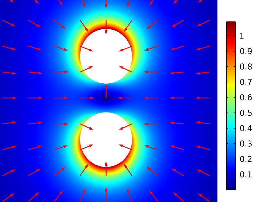 图1 两个气泡在声波激励下的速度场(图/yx06永兴彩票集团)