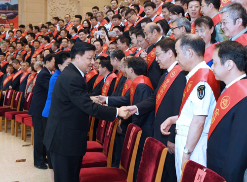 5月27日,庆祝全国科技工作者日暨创新争先奖励大会在北京举行。中共中央政治局常委、中央书记处书记刘云山出席会议并讲话。这是会议前,刘云山等会见出席会议的科技工作者。新华社记者饶爱民 摄