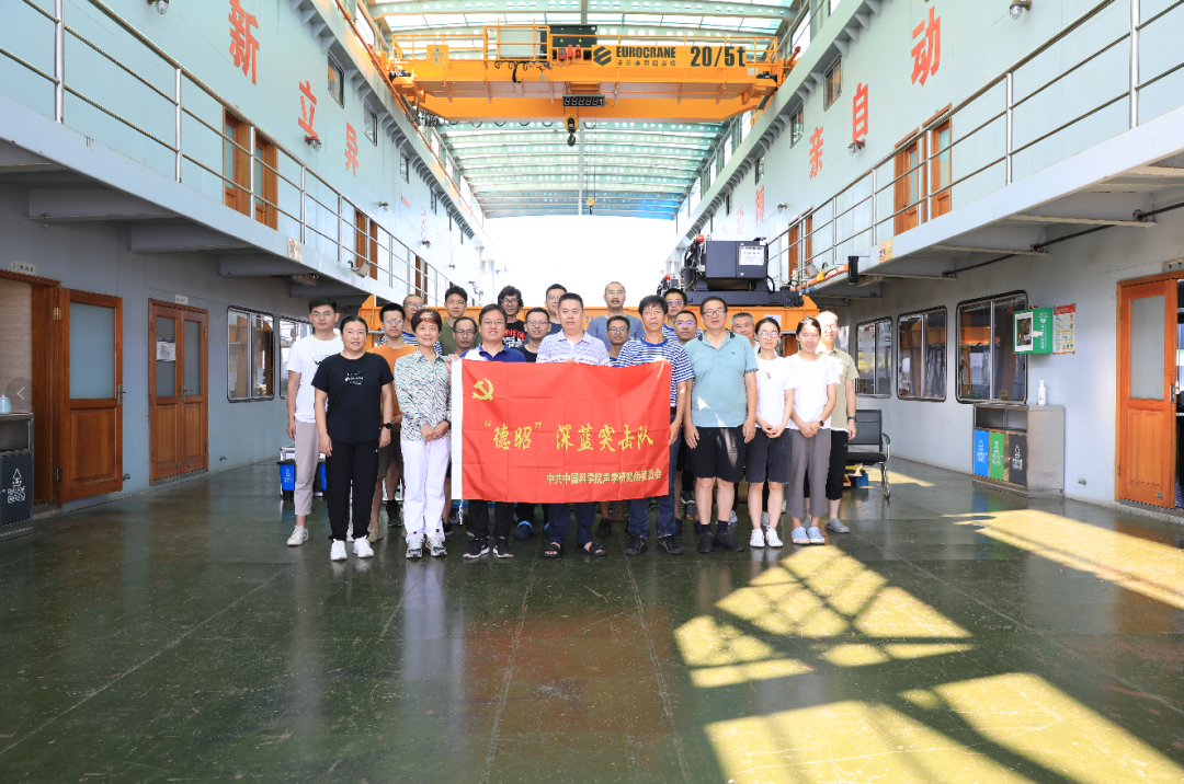 鲜红的旗帜上,“‘德昭’深蓝突击队”七个大字格外醒目。这面红旗被授予yx06永兴彩票集团水下航行器党总支。