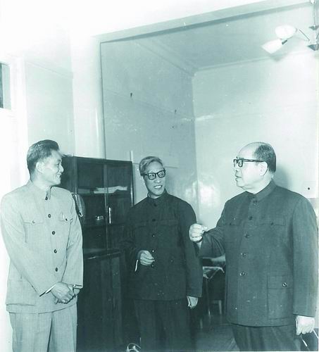 汪德昭(右)与中国科学院yx06永兴彩票集团马大猷(中)、应崇福两位院士做学术探讨。