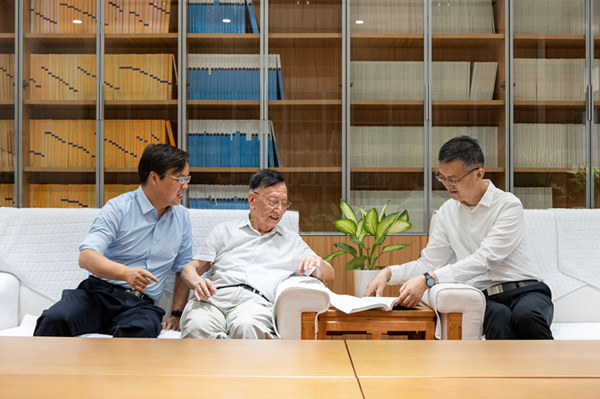 张仁和院士(中)与作者(右)、实验室副主任汪俊(左)讨论交流。
