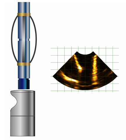 油井中的套管在长期使用中会出现一些问题,如变形、错断、破裂、外漏等。井下前方探视测井系统,进入井下,利用超声相控成像原理对套管进行扫描成像(就像在医院里用B超对人体器官进行成像检查),并将数据传回地面计算机上,在计算机中对数据进行处理分析并实时显示井下套管的形状,从而判断油井套管是否需要修复,达到保障油井安全生产、提高油气采收率的目的。