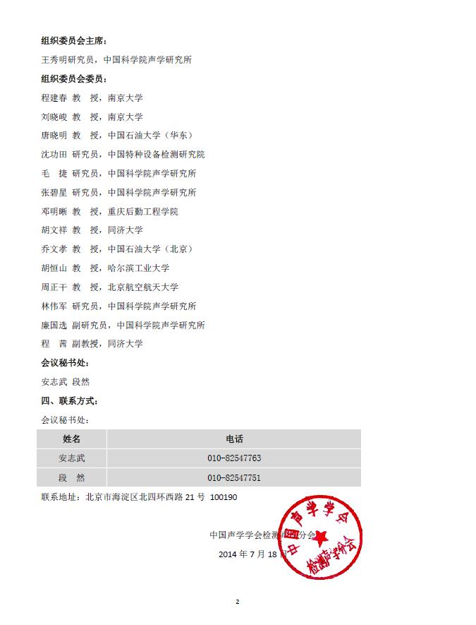 2014年度全国检测声学会议征文通知