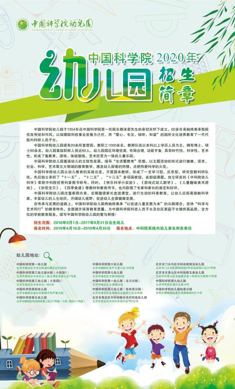 中国科学院幼儿园开始2020年入园预报名,现将有关事项通知如下。