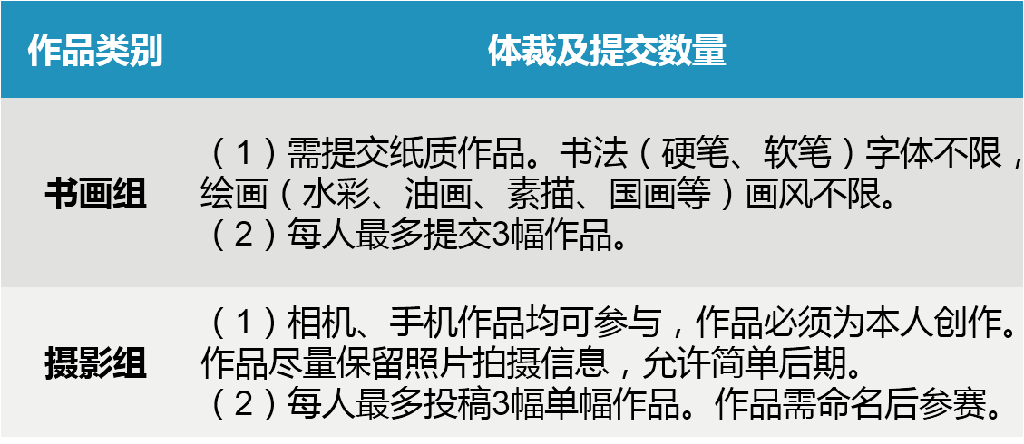 3. 书画组和摄影组分开评比,每个参赛者可同时投稿摄影和书画作品。摄影/书画组有多幅作品获奖时,以得分高的作品评奖。