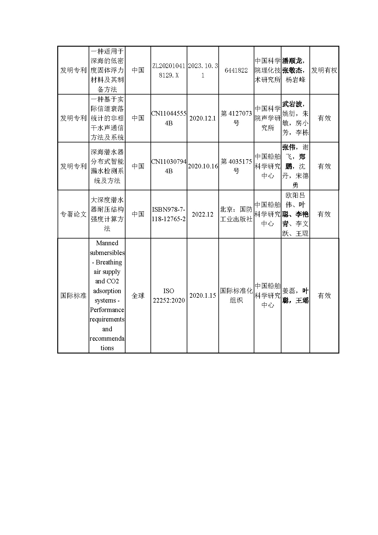 根据《国家科学技术奖励办公室关于2023年度国家科学技术奖提名工作的通知》要求,我单位作为“全海深载人深潜关键技术和装备自主研发与应用”项目的完成单位,拟提名国家科技进步奖,根据项目主要创新点和我单位的主要贡献,确定相关排名,现对有关情况公示如下: