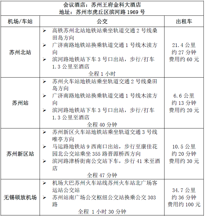 会议地点:苏州王府金科大酒店(苏州市虎丘区滨河路1969号)
