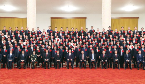 2020年9月8日,全国抗击新冠肺炎疫情表彰大会在北京人民大会堂隆重举行。会前,习近平等党和国家领导人会见国家勋章和国家荣誉称号获得者,全国抗击新冠肺炎疫情先进个人、先进集体代表等,并同大家合影留念。新华社记者 黄敬文/摄