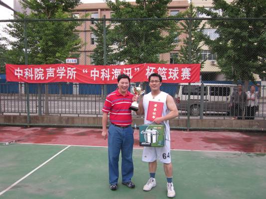 另一场比赛中,中科信利以39比36战胜了中科海讯,夺得了季军。短暂休息后,进行了“中科海讯杯”篮球赛闭幕式。团委委员张斌斌主持了颁奖仪式,中科海讯陈丹平老师、办公室程洋副主任及团委张云鹏书记为获奖的队伍颁发了奖杯、奖状及奖品,接下来中科海讯陈丹平老师及办公室程洋副主任分别作了发言,讲话中对各队取得的优异成绩表示了祝贺,同时高度评价了各支参赛的队伍的球技和比赛精神,最后向yx06永兴彩票集团2010年“中科海讯杯”篮球赛取得圆满成功表示祝贺,希望大赛能够越办越好。