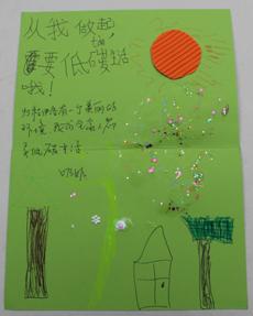 这个活动共得到28个小朋友及他们的家长的积极参与。小朋友们当场制作了精美的卡片,每张卡片都写着小朋友们各种各样的“低碳口号”,同时也写有爸爸妈妈爷爷奶奶的“低碳宣言”。相信很久以后,当家庭成员拿起这张卡片,在赞赏小朋友们的巧手的同时,也不忘重温一遍自己的低碳宣言:为了孩子的明天更美好,父辈们要坚持低碳的生活。