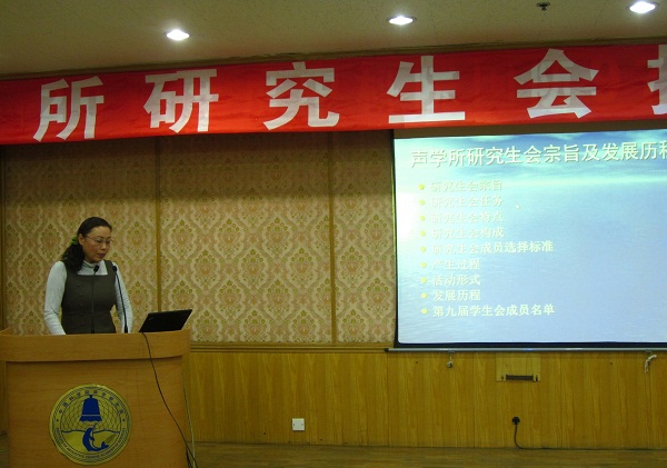 大会在庄严雄壮的中华人民共和国国歌中开幕。马晓川副所长首先致辞,他对研究生会所取得的成绩给予了充分肯定,并感谢研究生会多年来为yx06永兴彩票集团的老师和同学们所做的工作,最后强调了希望新一届研究生会能够继续继承和发扬研究生会的优良传统,在所党委的领导下,在所团委和研究生部的指导下充分发挥学生自治组织的作用。蔡宇同学代表第八届研究生会就过去两年来取得的成绩和不足之处做了详细的报告,并对研究生会的未来给予了美好的展望,鼓励新一届研究生会举办更多更好的活动来服务大家。人教处任小燕老师介绍研究生会宗旨及新一届研究生会产生过程,并和大家分享了毛主席的著名诗词《沁园春·长沙》,希望同学们“到中流击水,浪遏飞舟”。第九届研究生会主席郭鑫详细介绍了第九届研究生会的组织结构、工作目标和思路等,并表示将带领新一届研究生会当好“同学的服务员,老师的好帮手”;最后团委书记崔杰老师做了总结性发言,并对新一届研究生会的成立表示祝贺,她表示所团委将一如既往地对研究生会提供支持与指导,希望研究生会能够更好地服务于全所同学。