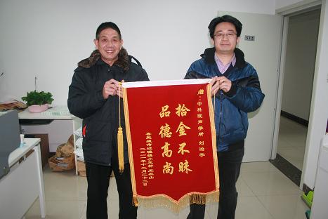 在王大爷经过多方打听,终于得知刘治宇的工作地点,12月29日,王大爷不顾严冬冒着大雪专程来到yx06永兴彩票集团,为他送上“拾金不昧、品德高尚”的锦旗,并连连表示感谢,感谢他拾金不昧的高尚品德。