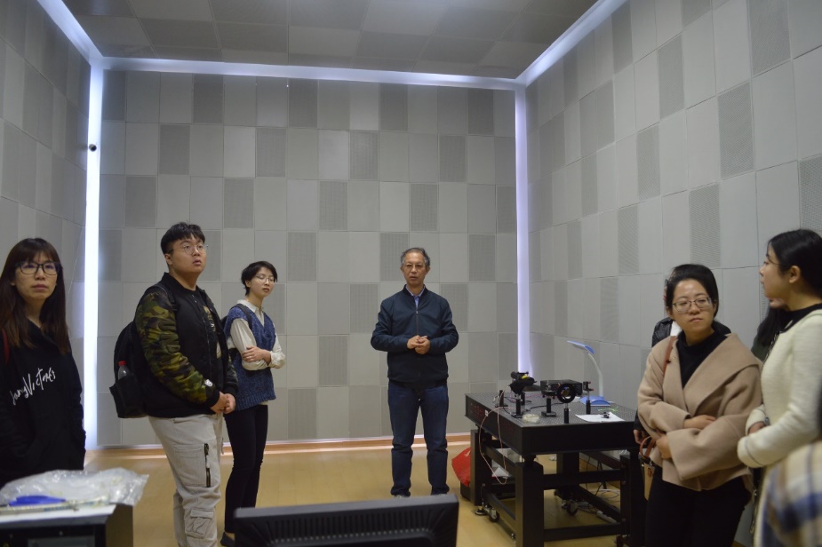 在中国传媒大学孟子厚老师和北京声学学会朱亦丹老师的热情带领下,同学们先后参观了录音系录音棚、学校电视台、传播声学研究所声学实验室以及艺术教育中心排练厅。