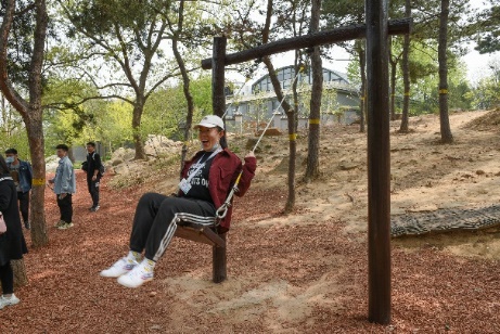 4月的西山国家森林公园绿树成荫,山桃花、夹桃花、连翘、榆叶梅、紫薇花等各路花卉争奇斗艳,放眼望去色彩斑斓满目舒适。徐徐的微风送来的大自然气息顿时令人通体舒畅,浑身轻松。大家自由活动,几人成伍,放松而惬意地开始了健步走。有的运动健将们步履如飞,很快登到了山顶,极目远眺,高楼房屋、青葱翠柏尽收眼底,有“一览众山小”之感,令人心旷神怡。有的登山爱好者则童心未泯,在森林大舞台玩起了滑梯、跷跷板和秋千等游乐设施。现场一片欢声笑语,午后的疲乏一消而散,平时工作的劳累与身心的疲惫也在这里得到了尽情的释放。大家沉浸其中,享受着在大自然尽情运动与玩耍带来的轻松与愉悦。