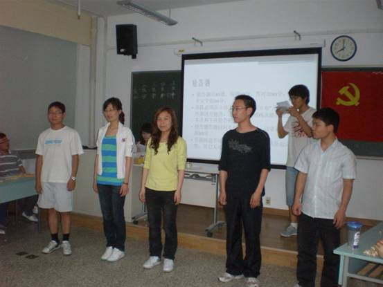 随后举行了党员知识竞赛。竞赛的目的是为了增强党员理论知识的学习,加强党员之间的文化交流。活动的参赛者为全体党员,一共分为五组队员参赛,每组八人,其中四人作为代表答题。整个竞赛过程由必答题,抢答题、风险题组成,所有题目涉及党史、党章内容。在竞赛的角逐过程中,参赛的五组队员们你追我赶,场上的比分都很接近。各参赛队员们对我们党的历史和章程非常了解,在抢答题环节,主持人还没把题念完的时就有同学迅速举手答题,并回答正确!最后经过激烈的角逐,一组和二组的得分相同。根据比赛规则,两组队员进行了加时赛。竞赛的最后结果是由一组队员以险胜十分的优势夺取了本次党员知识竞赛的冠军!