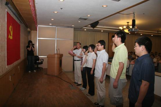 面对鲜红的党旗,党委委员孙长瑜带领崔杰等5名新入党同志进行了庄严的宣誓。“为共产主义奋斗终身,随时为党和人民牺牲一切,永不叛党。”铿锵有力的誓言在会场上激荡。医用声学支部崔杰同志作为新党员代表发言。