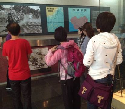 我们首先参观展馆参观区,共分为三个部分:分别是冀东抗战燃烽火、人民战争建奇功、今日顺义更美好。通过参观照片、图片和实物以及讲解员细致的介绍,我们对焦庄户人民的地道战历史有了深入的了解。焦庄户人民同国内外敌人开展地道战斗始于1943年春天,当时只是挖了几个隐蔽洞。这种洞只能藏一两个人和少量食物。一旦被敌人发现只有束手就擒。为了跟敌人长期斗争,村党支部发动群众,把单个隐蔽洞连接起来,并在地道内安装了翻板、单人掩体和暗堡等战斗设施以及数十个休息室和指挥所,供民兵和群众较长时间的在地道内战斗和生活。到了1946年村里共挖了23里长的地道,村内纵横交错并和邻村相连,形成了能打能防的战斗型地道网。焦庄户人民在抗日战争和解放战争年代,利用地道、地雷同敌人进行英勇顽强的斗争,从1943年到1948年共战斗150余次,击毙击伤敌人130多人,俘虏敌人100多人,击毁敌军车一辆 ,缴获武器100多支,子弹3500多发和敌电台一部。