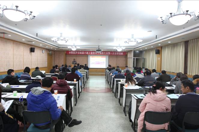 20151127日上午,声学研究所第八届工会暨第五届职代会第一次全体会议在DSP大楼多功能厅举行。所长王小民、党委书记张春华及与会代表60余人参加了会议。院工会办公室主任王登礼出席会议并致辞。工会(职代会)常务副主席周秀霞主持会议。