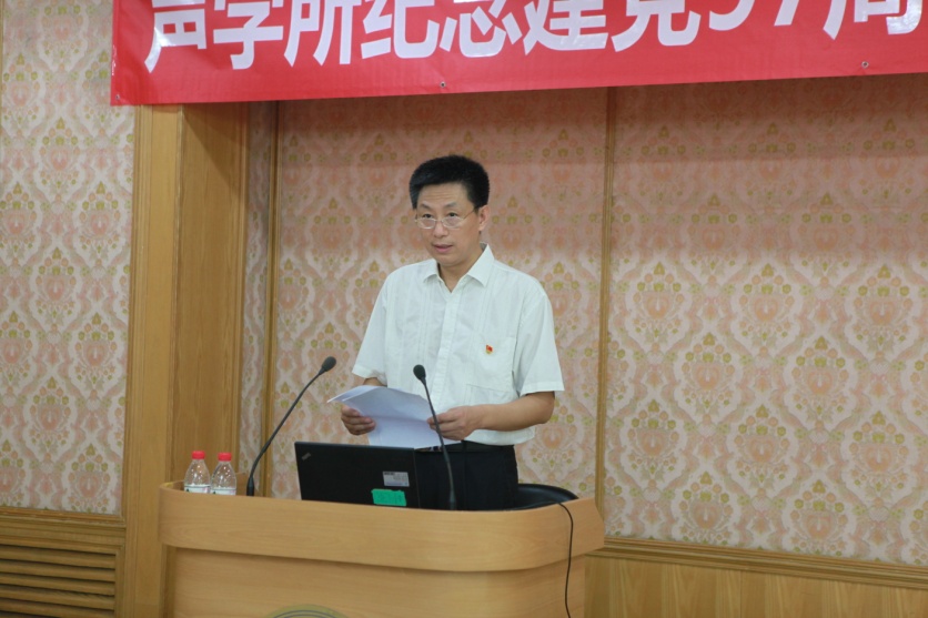 随后,进行了主题交流报告。yx06永兴彩票集团党委委员、超声技术中心主任王秀明研究员结合自己的学习、工作及成长经历,回忆了自己的入党历程,通过一件件形象生动的小事,将自己对人生的感悟、对科技事业的执着追求娓娓道来。同时,他还结合实验室的建设,强调要加强人才队伍培养和团队建设,为海洋创新院和yx06永兴彩票集团的发展发出更大贡献,做一名合格的共产党员。