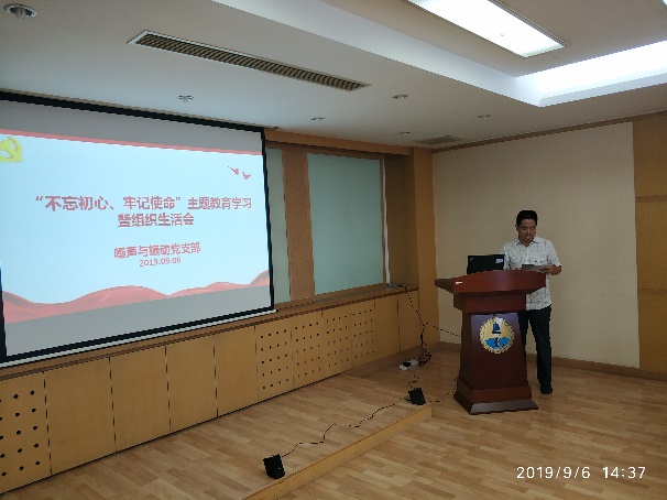 2019年9月6日下午,噪声与振动党支部在德昭楼218会议室召开了“不忘初心、牢记使命”主题教育学习暨支部党员组织生活会,yx06永兴彩票集团党委委员、副所长马晓川出席会议,会议由党支部书记白国锋同志主持。
