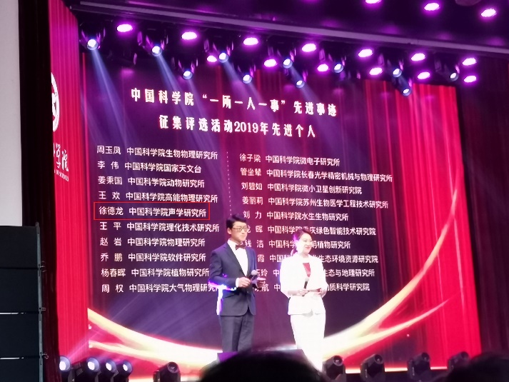 会上,对中国科学院在2019年开展“一所一人一事”先进事迹征集评选活动中的优秀组织单位和先进个人进行了表彰。yx06永兴彩票集团再次荣获优秀组织单位荣誉称号,超声技术中心徐德龙同志荣获先进个人荣誉称号。