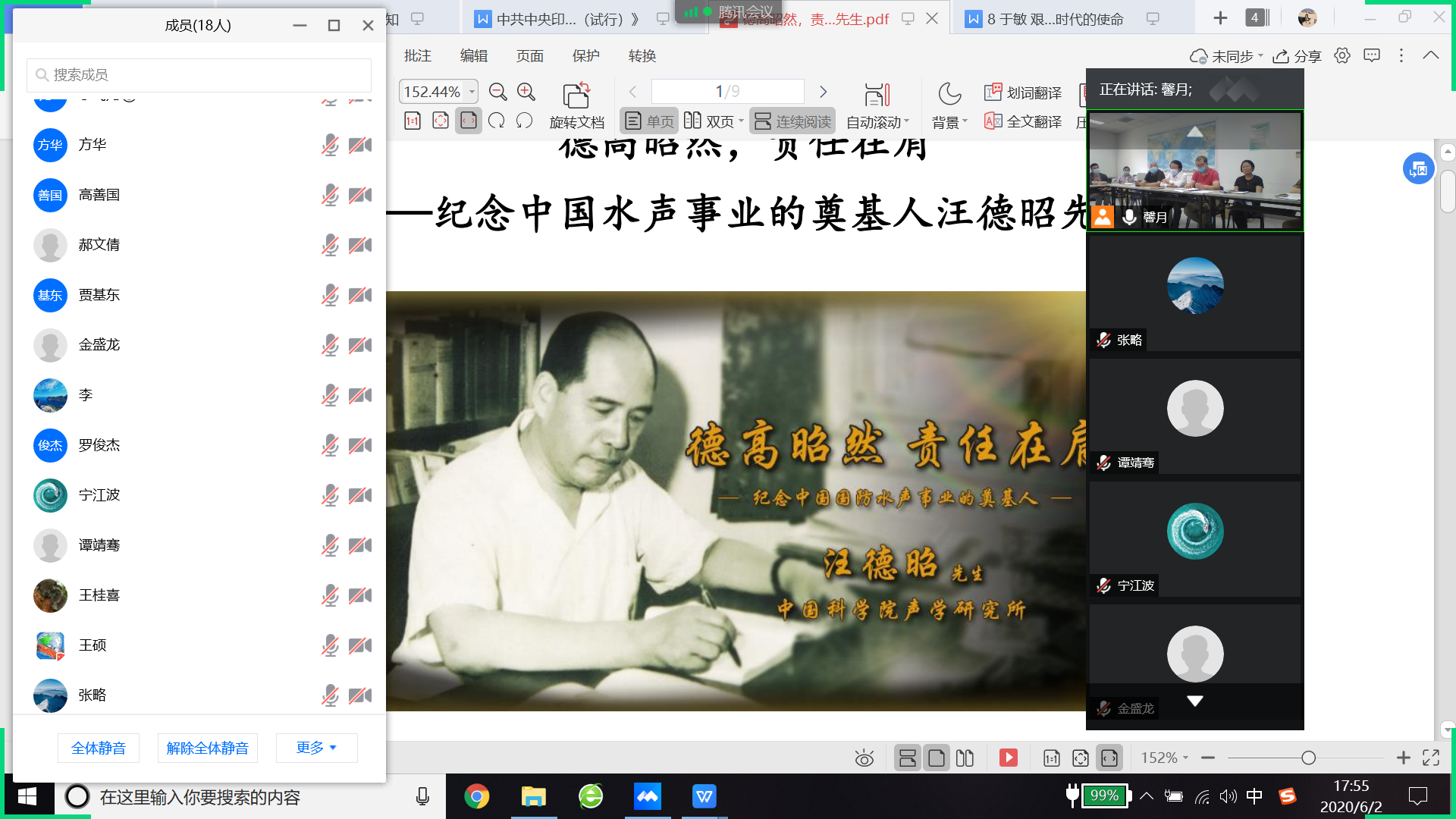 202062日,水声工程中心党支部采用线上线下相结合的形式,开展了“诵读科学经典,弘扬科学家精神”主题党日活动。线上线下40余名党员参加了活动。