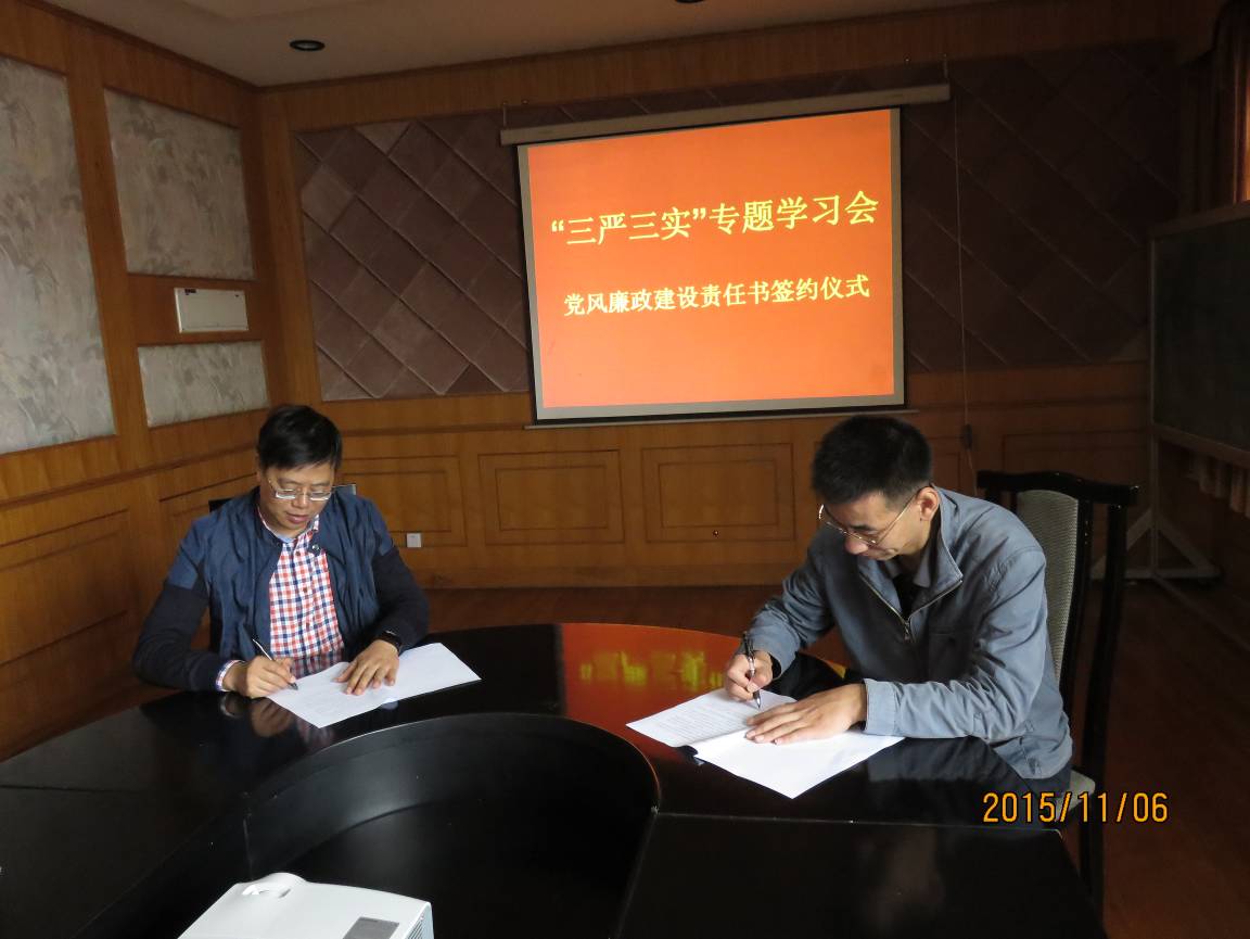 为全面贯彻落实从严治党要求,巩固和拓展党的群众路线教育实践活动成果,持续推进思想政治建设和作风建设,东海站党委于11月6日上午组织开展“三严三实”专题学习会暨党风廉政建设责任制签约仪式,站领导班子成员、中层及以上管理干部、课题组长和党支部书记等近20名同志参加了学习会。会议由党委书记、站长胡长青主持。
