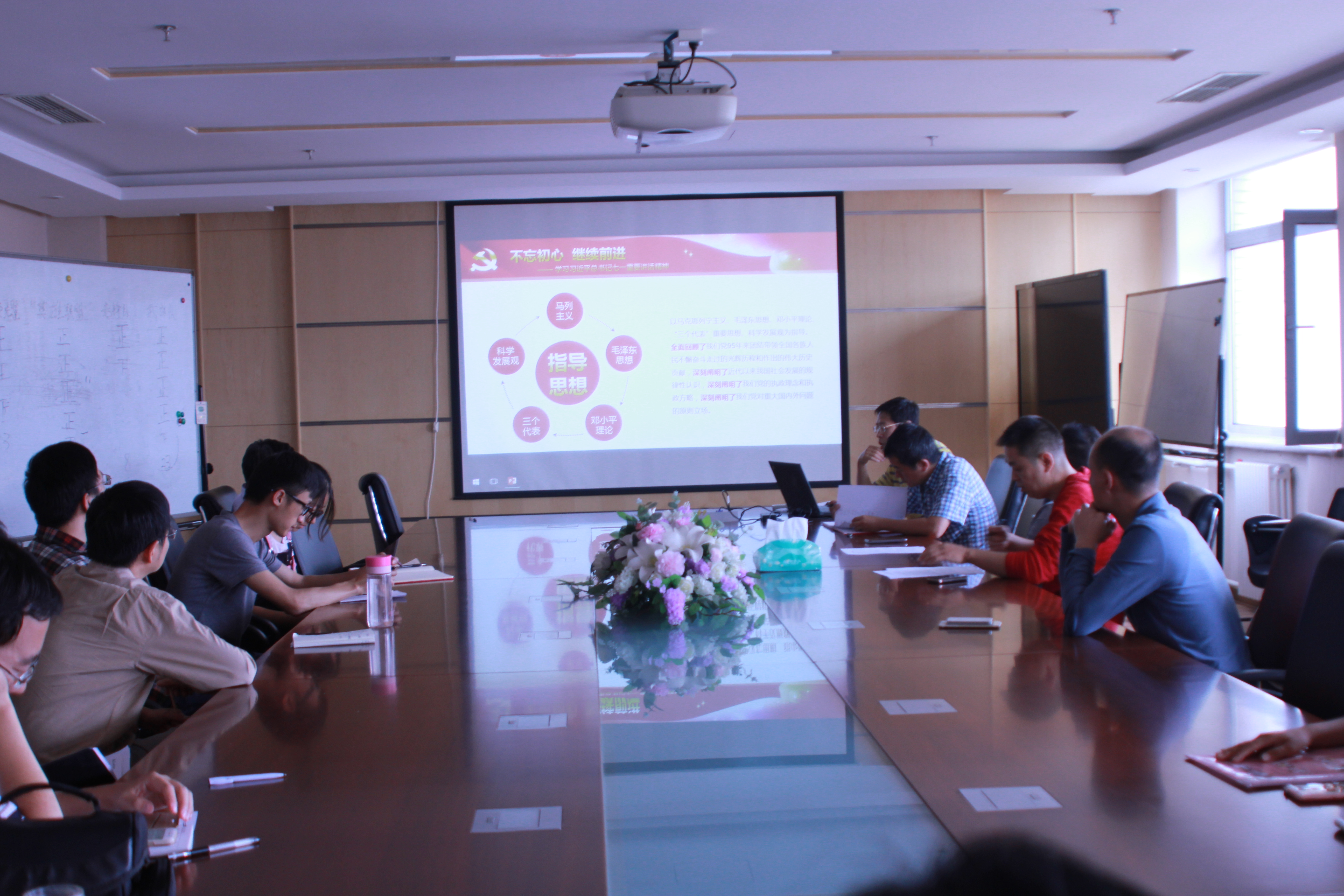刘明刚同志首先带领大家学习了习近平总书记在庆祝中国共产党成立95周年大会上发表的重要讲话,强调我们党已经走过了95年的历程,但我们要永远保持建党时中国共产党人的奋斗精神,永远保持对人民的赤子之心。一切向前走,都不能忘记走过的路;走得再远、走到再光辉的未来,也不能忘记走过的过去,不能忘记为什么出发。面向未来,面对挑战,全党同志一定要不忘初心、继续前进。