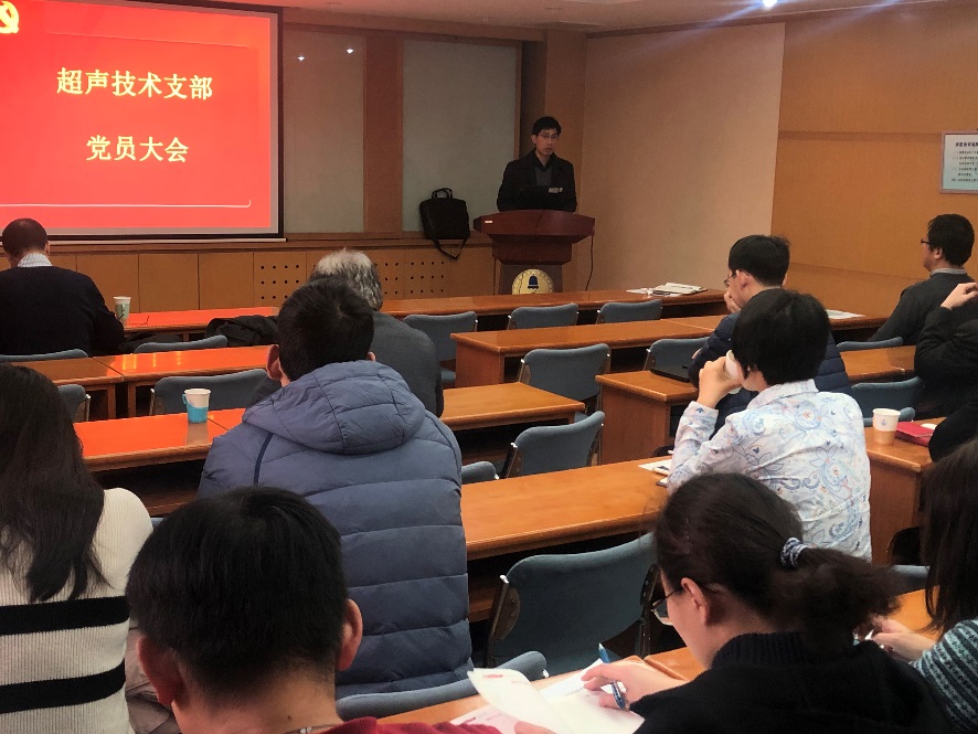 2018年12月3日上午,超声技术党支部在德昭楼218会议室召开党员大会,学习习近平新时代中国特色社会主义思想三十讲。会议由支部书记陈德华同志主持。