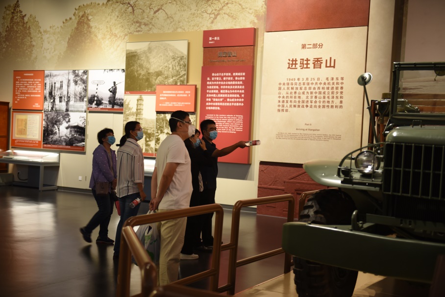 纪念馆内设有《为新中国奠基——中共中央在香山》大型主题陈列展,全面展示了中共中央进驻香山时期波澜壮阔的革命历史。党员们自由参观了展览五大部分,其中“进京‘赶考’”“进驻香山”“继续指挥解放全中国”“新中国筹建”等部分回顾并展出了以毛泽东同志为核心的第一代领导集体,在领导中国人民解放战争走向全国性胜利、建立新中国这一重要历史时期的关键事件及珍贵资料;“不忘初心牢记使命 永远奋斗”部分记述了新一代共产党人沿着先辈足迹,为实现中华民族伟大复兴而奋斗的历史进程。