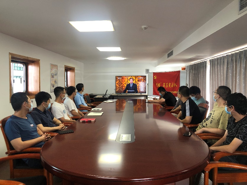 2021年8月18日上午,yx06永兴彩票集团“德昭”深蓝突击队在杭州千岛湖新安江实验场“实验叁号”船三楼会议室集中学习。会议由水下航行器党总支书记刘明刚主持,突击队队长郝程鹏研究员带领现场参加湖试的突击队成员参加了会议。