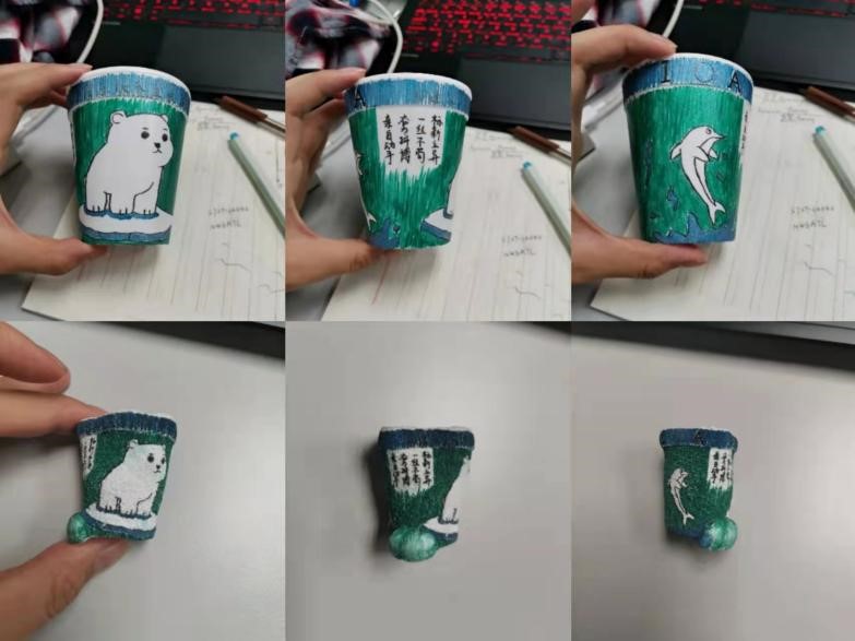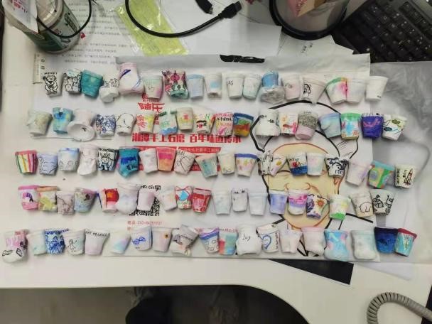 大家的作品各有特色,无不浓缩着对生活、对科研的热爱。有的参与者将实验室名称与logo画在杯子上,有的将自己的亲朋好友或内心愿望简画其上……作品五彩斑斓,灵动率真,趣味无穷,意义深远。
