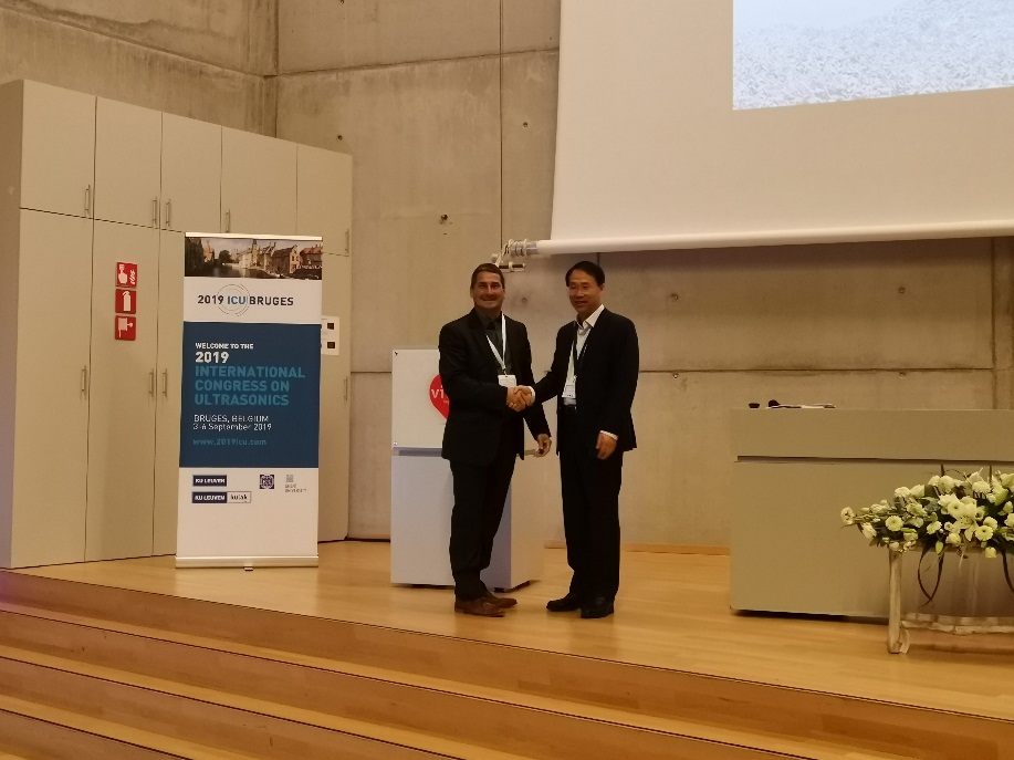 2019年9月3日至6日,2019年国际超声大会(2019 International Congress on Ultrasonics)在比利时布鲁日鲁汶大学召开。本次大会共收到488篇论文投稿,正式接收445篇,其中大会报告7个,口头报告347个,墙报展示91个。来自40个国家和地区的483名代表参会,其中的51名代表来自中国。