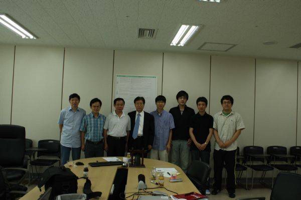 7月23日,访问团来到韩国著名大学成钧馆大学纳米与智能系统实验室,与韩国著名智能控制与微系统专家Prof. Lee Sukhan 行了友好会谈。Prof.Lee原来是韩国三星尖端技术研究院副总裁,2003年起被聘为成钧馆大学教授,1998年起成为IEEE fellow,目前该实验室主要工作在于智能机器人以及微注射器等微传感技术。该实验室博士后研究人员对其实验室代表性工作作了介绍,yx06永兴彩票集团王文副研究员则对yx06永兴彩票集团声表面波课题组的研究进展作了简介,Lee教授饶有兴趣的提出是否有可能将声表面波技术应用到打印机微注射器上来,并对课题组气体传感器的研制表现出较大兴趣。访问团与Lee教授探讨了未来在微传感系统领域可能进行的合作,最后双方合影留念,还互相赠送了礼品。