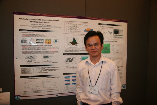 中科院yx06永兴彩票集团超声与微机电实验室以何世堂研究员所率领的研究团队主要从事声表面波技术的研究,早期主要集中在信号处理方面应用,近几年转向以传感器为主:包括声表面波气体传感器、生物传感器、陀螺仪、压力传感器、结冰传感器等。生物传感器主要采用液相传感器,Love波传感器因适合液相应用且灵敏度高而成为研究热点。本课题组目前也投入了不少力量从事Love波传感器的研究。通过参加这次会议,我们可以关注国际上的新思路。