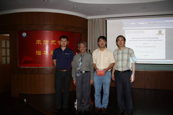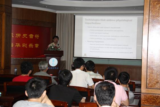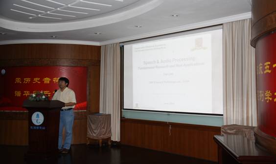 下午2点,李丹教授作了题为“Speech and Audio Processing: Fundamental Research and New Applications”的报告。冯海泓研究员主持报告会并简要介绍了东海站语音信号处理研究发展情况。