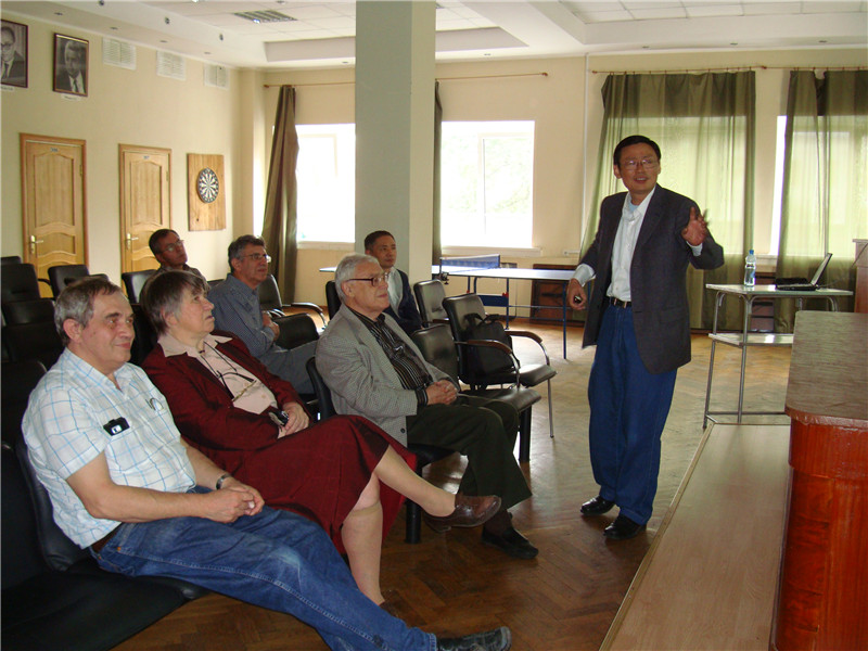 在学术交流会上,通信声学实验室主任李晓东研究员作了题为"Study of Communication Acoustics"的报告,杨亦春研究员作了题为"Study of an Infrasound Event in March 2014"的报告,并就这两个专题与俄方学者进行了深入的探讨。俄方专家对我所在自然事件次声波研究领域取得的进展表示了高度关注,期待能够在该领域进一步研究与合作。俄罗斯科学院Golicyn G. Sergeevich院士谈到了他对地震波的观点,对可能存在的地震前兆次声波研究表示支持与肯定,Igor Chunchuzov教授提出了利用CASI-ISM-2013型次声传感器在北京和莫斯科分别建立次声观测网络来研究中尺度距离的次声传播规律。