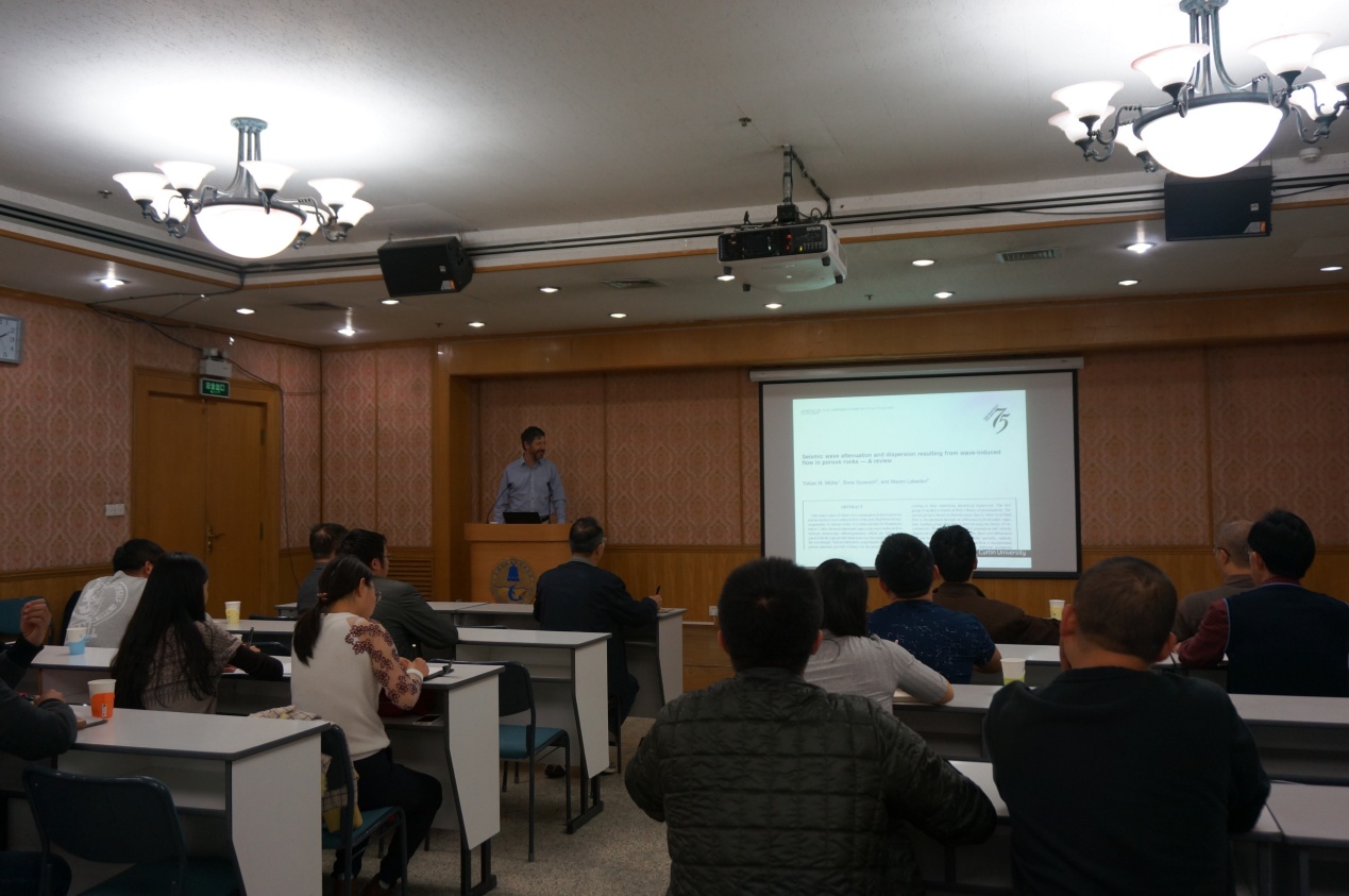 应yx06永兴彩票集团超声技术中心王秀明主任的邀请,澳大利亚科廷大学科学与工程学院的副院长Boris Gurevich教授于201641日顺访yx06永兴彩票集团,并作了题为“Effect of the fluid, solid and viscoelastic pore fill on velocity, attenuation and anisotropy of porous and fractured rocks”的学术报告,会议由王秀明主任主持,超声技术中心的张碧星副主任、林伟军研究员、丛健生研究员、陈德华研究员、陈浩研究员以及噪声与振动重点室的李晓林研究员等参加了报告会。