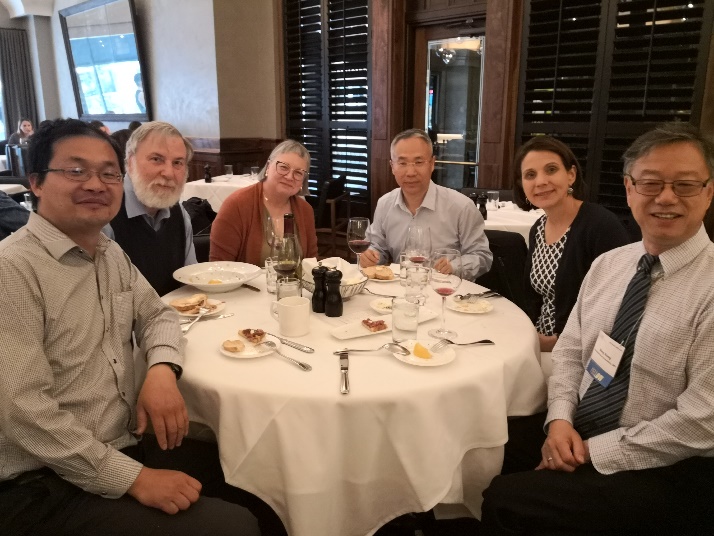 5月10日晚,美国声学学会Marcia Isakson理事长邀请王秀明主任、美国声学学会Susan E. Fox执行主任(Executive director)、JASA主编James F. Lynch教授、美国伦斯勒理工学院建筑声学科学系主任向宁教授以及美国密西西比大学张黎昆助理教授等共进晚宴,并就有关中国、美国声学学会之间的国际合作与交流等事宜进行了进一步的沟通。