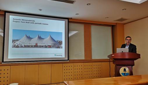 随后,Peter博士也围绕声学超材料作了主题报告,介绍了声学超材料在建筑物理中的一些前沿应用,报告十分精彩,引发了现场热烈的讨论,开拓了参会人员在自己所在领域的视野及思路。