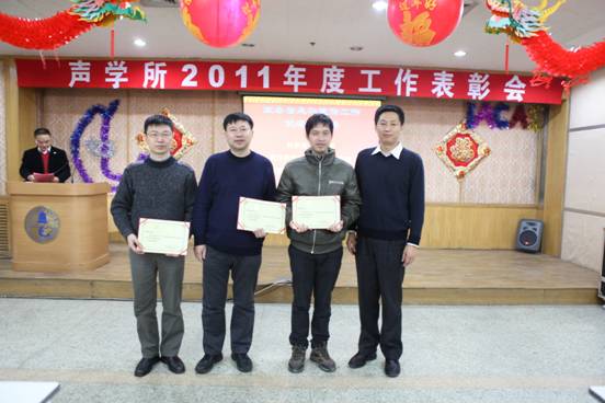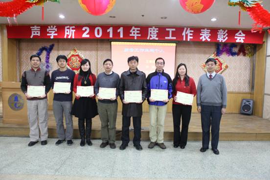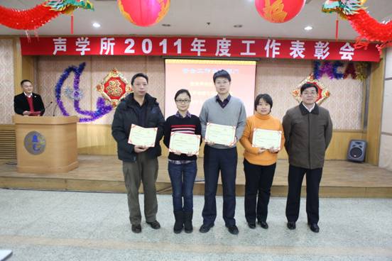 会议对2011年在各项工作中取得突出成绩的单位和个人进行了表彰。其中,海洋声学技术实验室、中科院水声环境特性重点实验室、中科院语言声学与内容理解重点实验室、国家网络新媒体工程技术研究中心分别承担的4个项目荣获得yx06永兴彩票集团2011年度重大项目进展奖;国家网络新媒体工程技术中心等3个实验室(中心)分别获得专利申请先进单位一、二、三等奖;数字系统集成实验室等3个实验室分别获得软件登记先进单位一、二、三等奖;王文等同志分别获得发表论文先进个人一、二、三等奖。会议还颁发了政务信息及宣传工作先进单位、先进个人、优秀组织(个人)奖、优秀稿件奖;安全工作先进部门、先进个人;质量工作先进部门、先进个人、内审工作先进个人、优秀检验员、优秀基层分工会等奖项。
